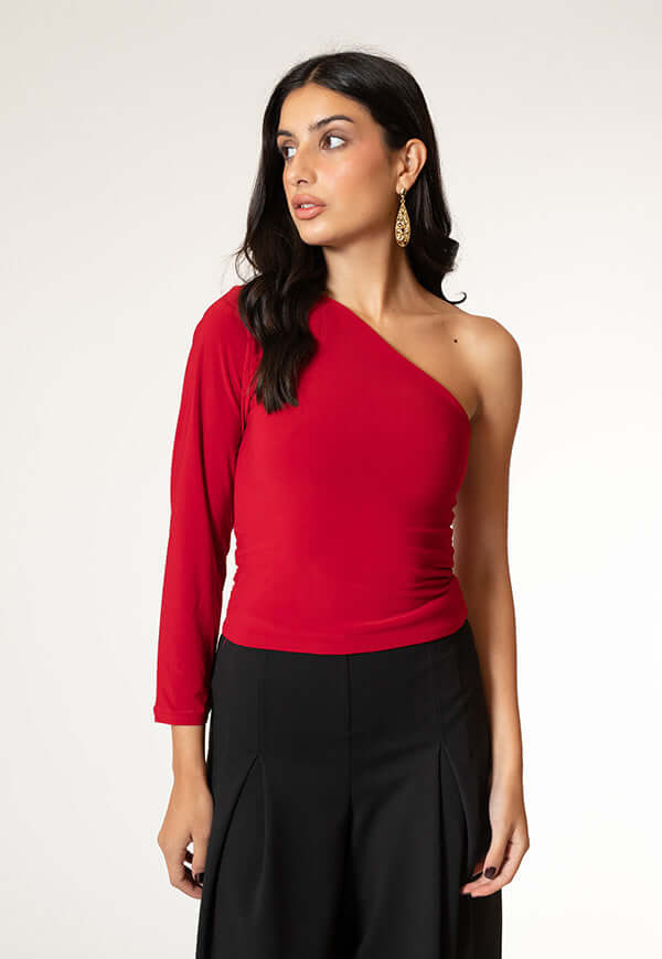 Polera Ema Rojo Hombro Descubierto – Top de Diseño Chileno