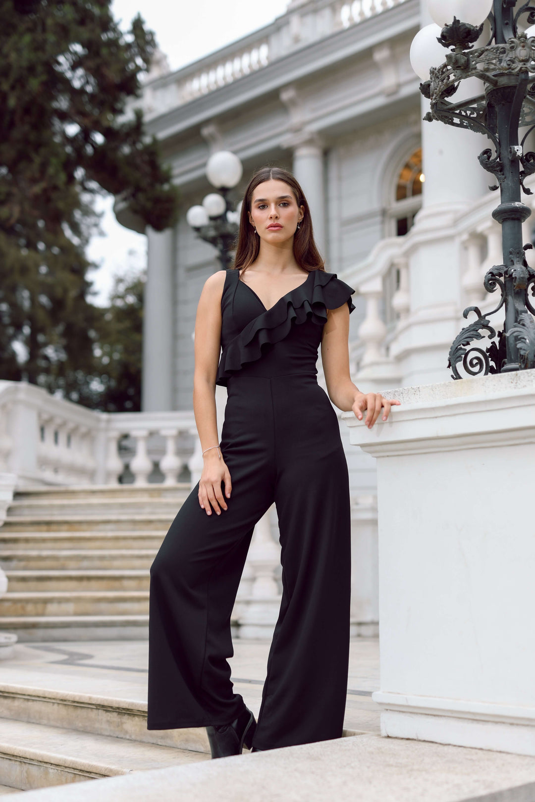 Prefiere tejidos con caída (satén/crepé), pernera palazzo y detalles sutiles de brillo. Completa con sandalias y clutch.