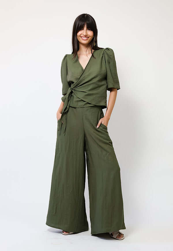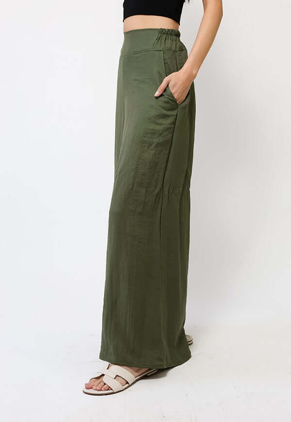 Palazzo de lino ligero y fresco, con cintura elástica en la espalda para un calce cómodo. Corte ancho que aporta movimiento y bolsillos laterales funcionales para el día a día. Ideal para combinar con blusas o poleras y lograr un look relajado y elegante.