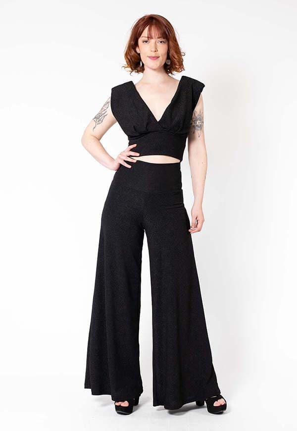 Crop Top Camile Fiesta Negro Brillos – Top de Diseño Chileno