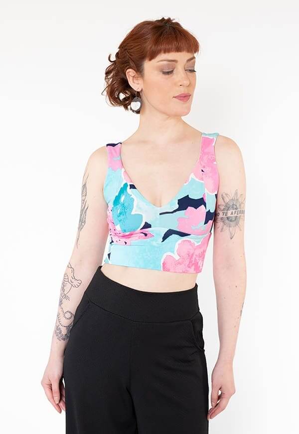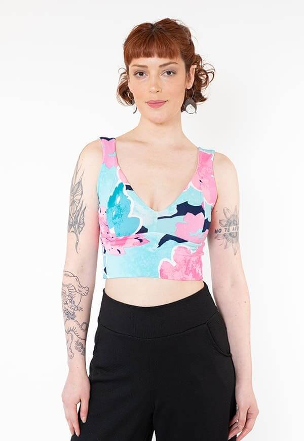 Crop Top Vera Celeste Flores - Diseño Chileno | Natalia Seguel