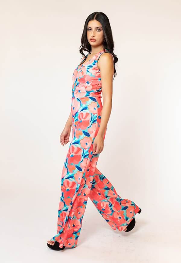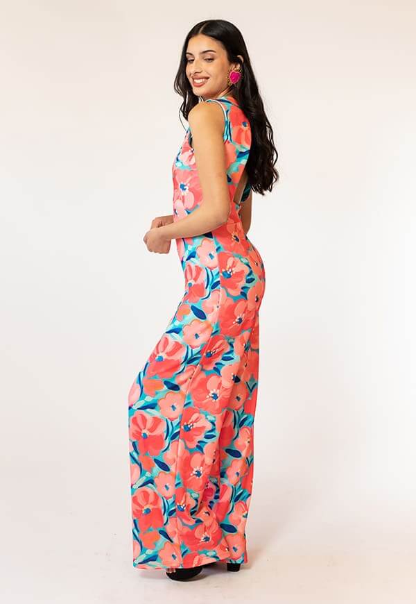 Enterito Cata Turquesa Flores Coral Natalia Seguel estampado flores, lateral (2) – diseño chileno de autor, Natalia Seguel