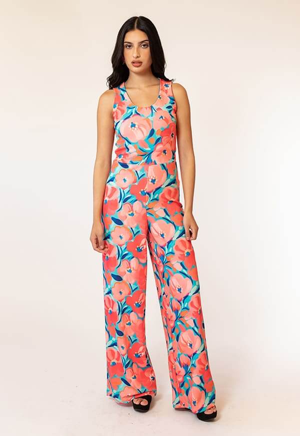 Enterito Cata Turquesa Flores Coral Natalia Seguel estampado flores, lookbook – diseño chileno de autor, Natalia Seguel