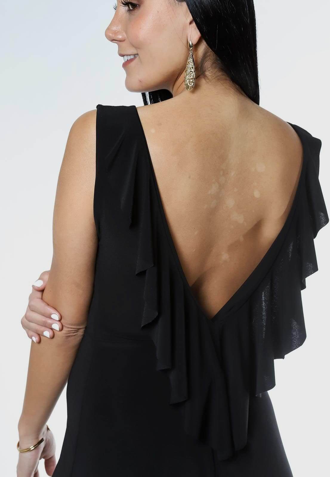 Enterito Celeste Corto Negro, espalda – diseño chileno de autor, Natalia Seguel