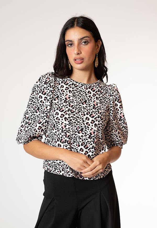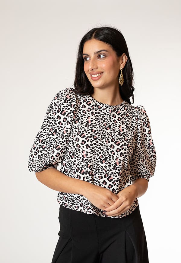 Polera Abril Manga Corta Animal Print Rosa – Top de Diseño Chileno