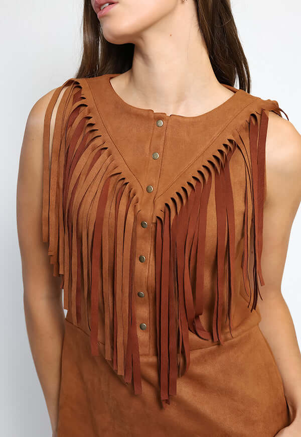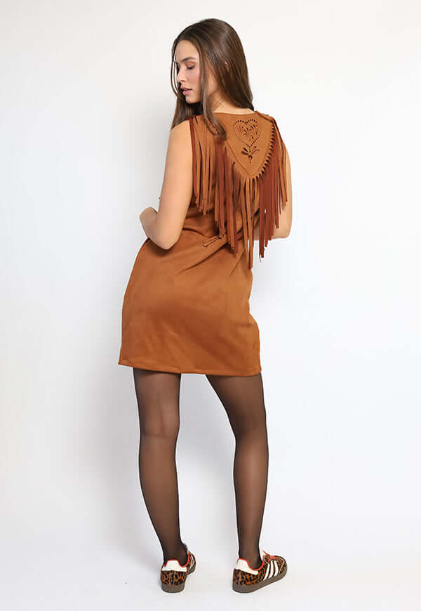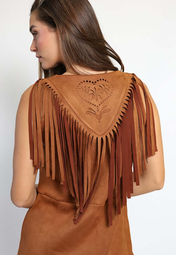 El vestido flecos cafe es un vestido elegante y versátil, ideal para mujeres que buscan destacar con estilo. Su confección en Chile garantiza calidad y diseño de autor con sello local.