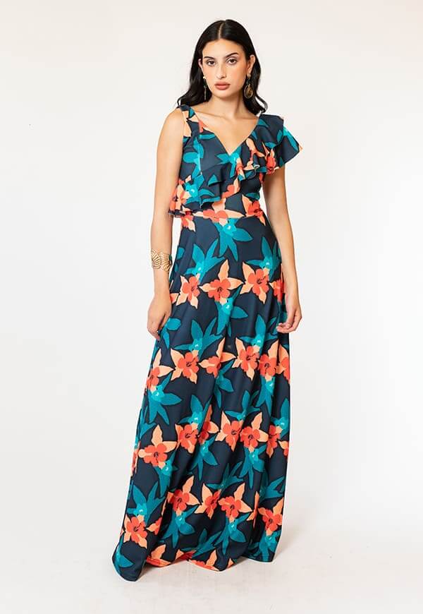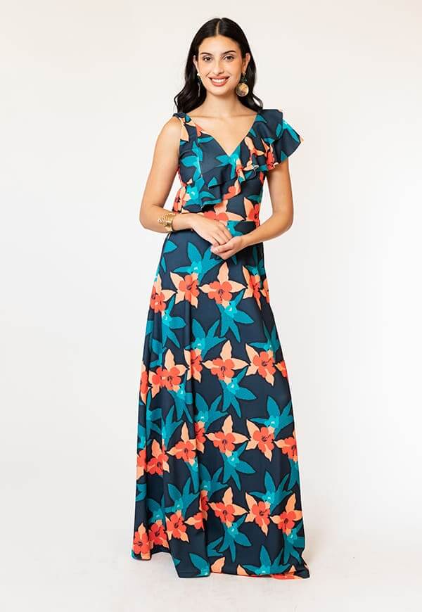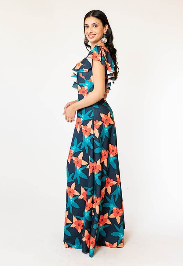 El vestido juliana azul flores es un vestido elegante y versátil, ideal para mujeres que buscan destacar con estilo. Su confección en Chile garantiza calidad y diseño de autor con sello local.