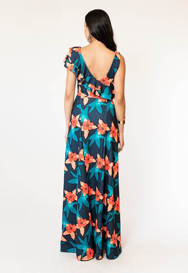 Vestido Juliana Azul Flores - Diseño Chileno | Natalia Seguel