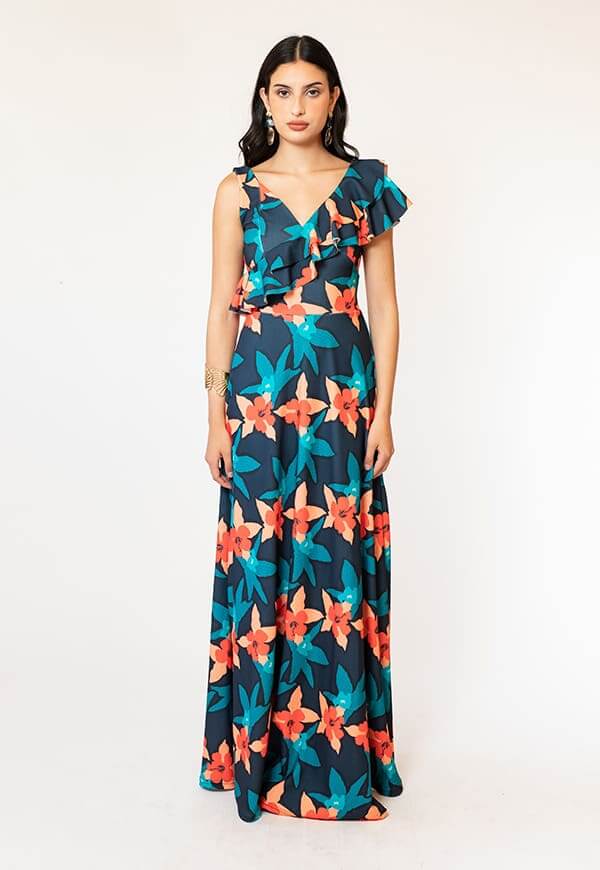 Vestido Juliana Azul Flores – Vestido de Diseño Chileno