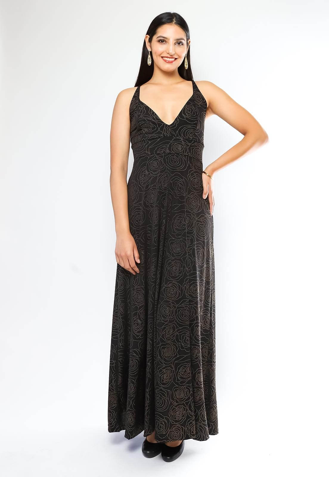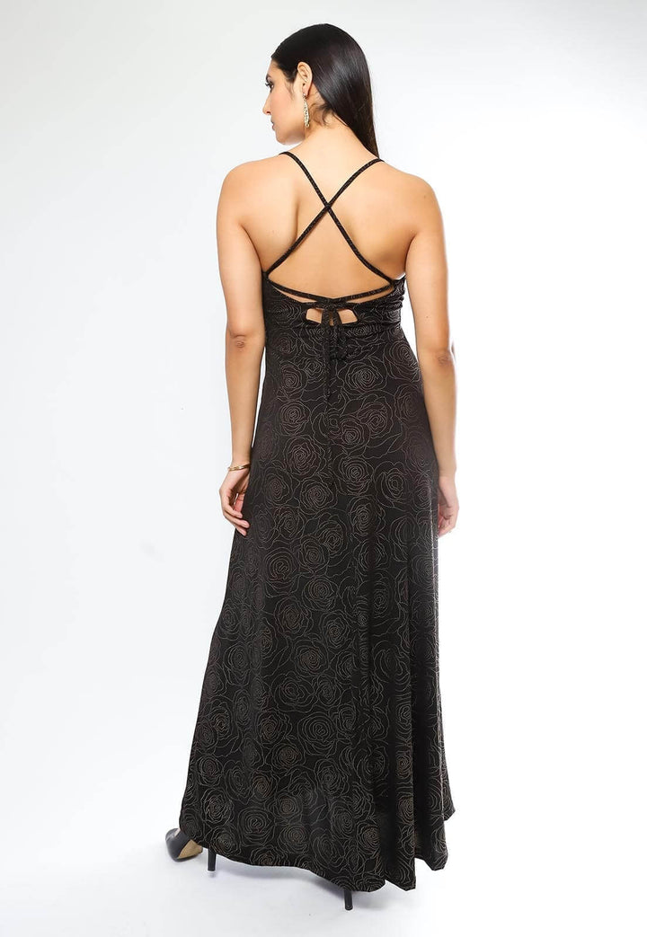 Vestido Zara Fiesta Rosas Doradas – Vestido de Diseño Chileno